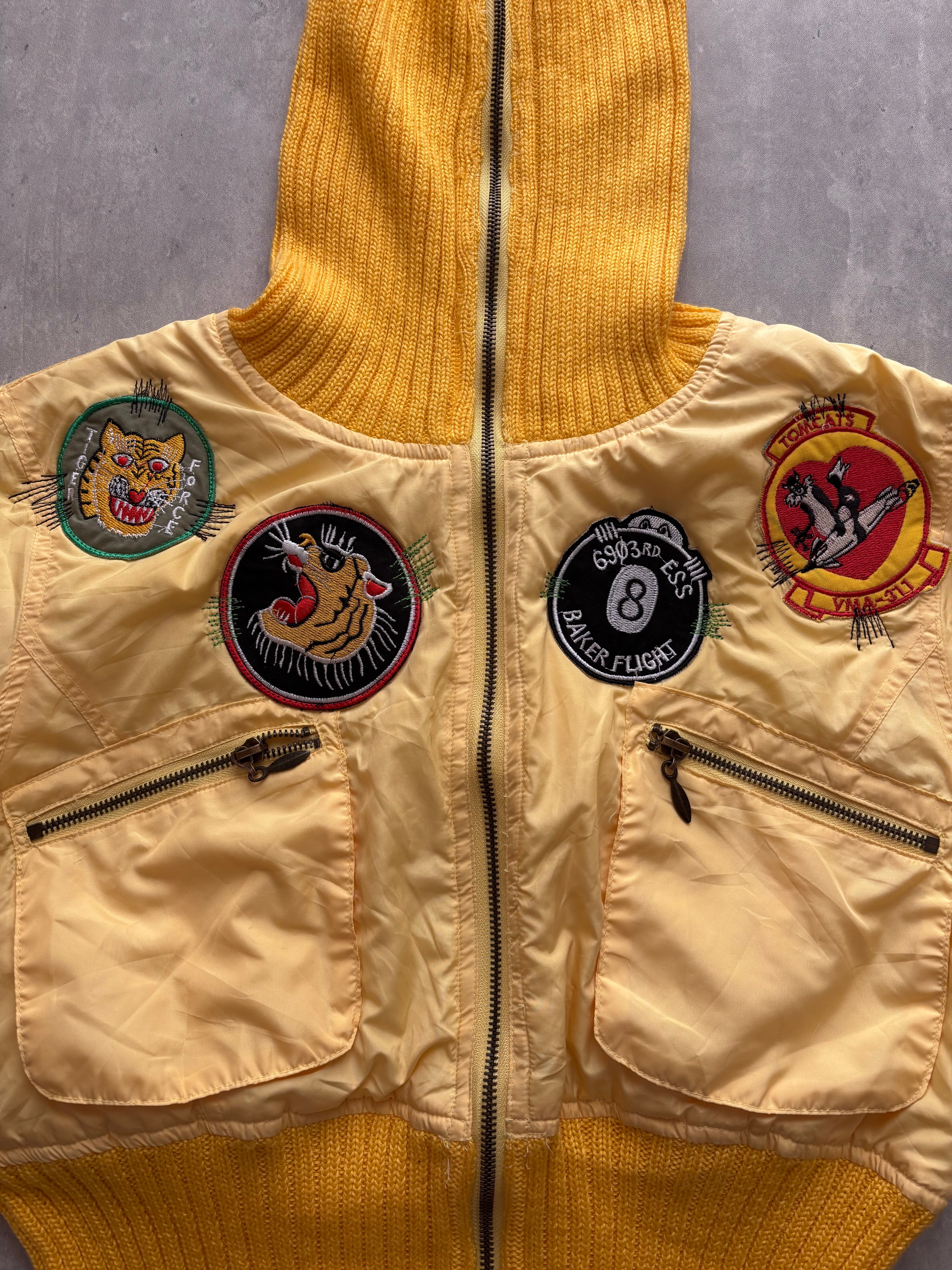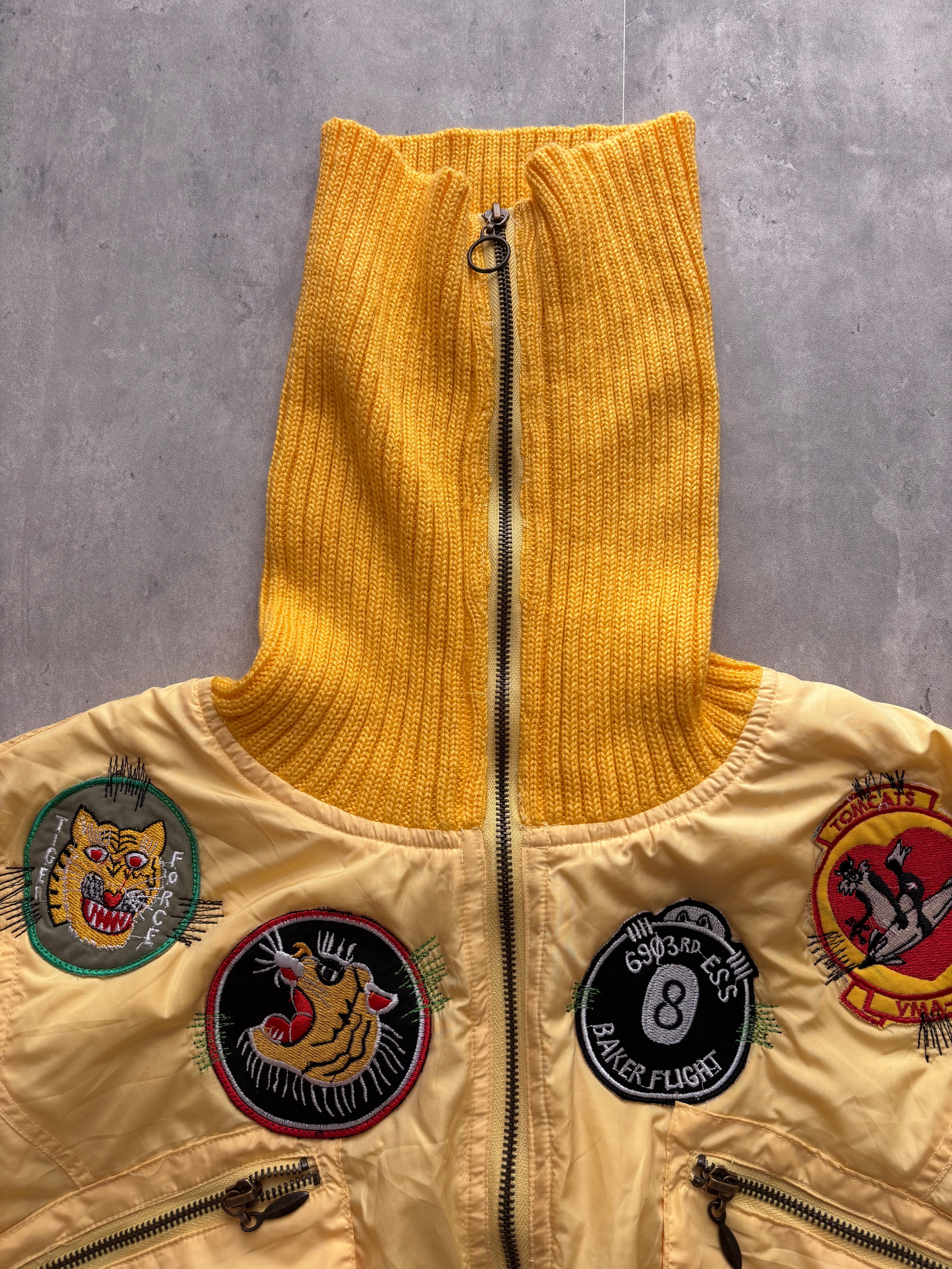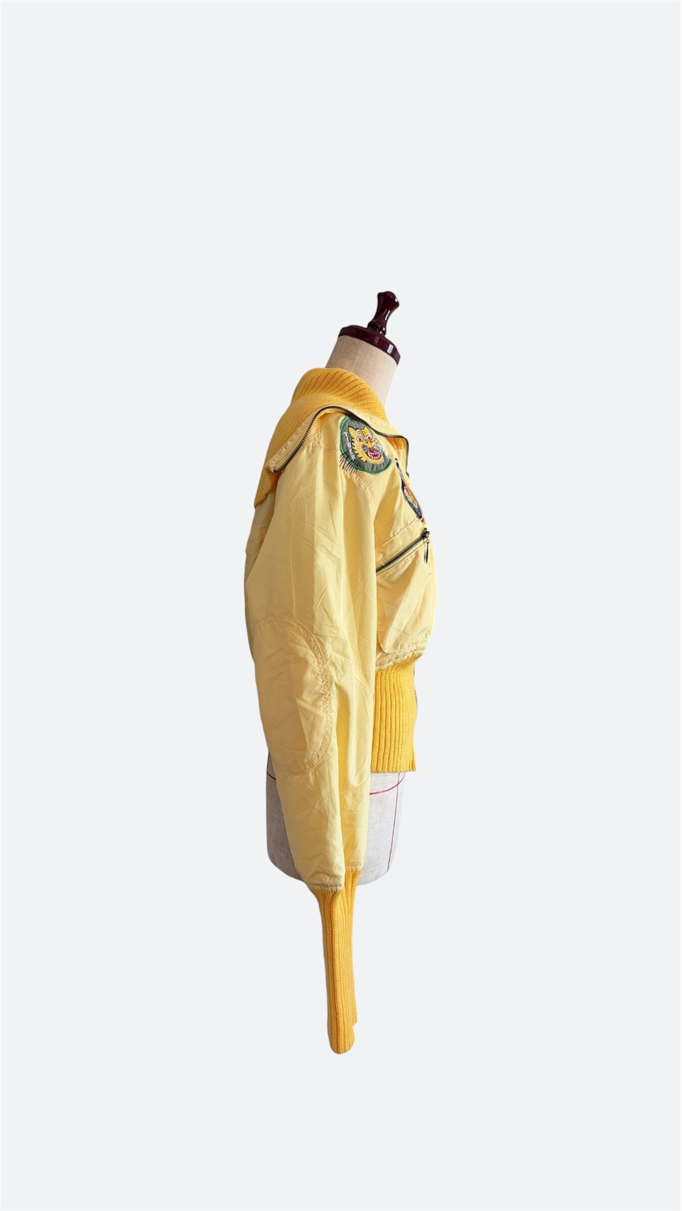 鮮やかなイエローが目を引くフライトジャケットは、可愛いワッペン付きで個性を引き立てます。軽やかでありながらあったかい素材が、これからの季節にぴったりのアイテムです。デイリーユースはもちろん、特別なコーディネートにもおすすめです!