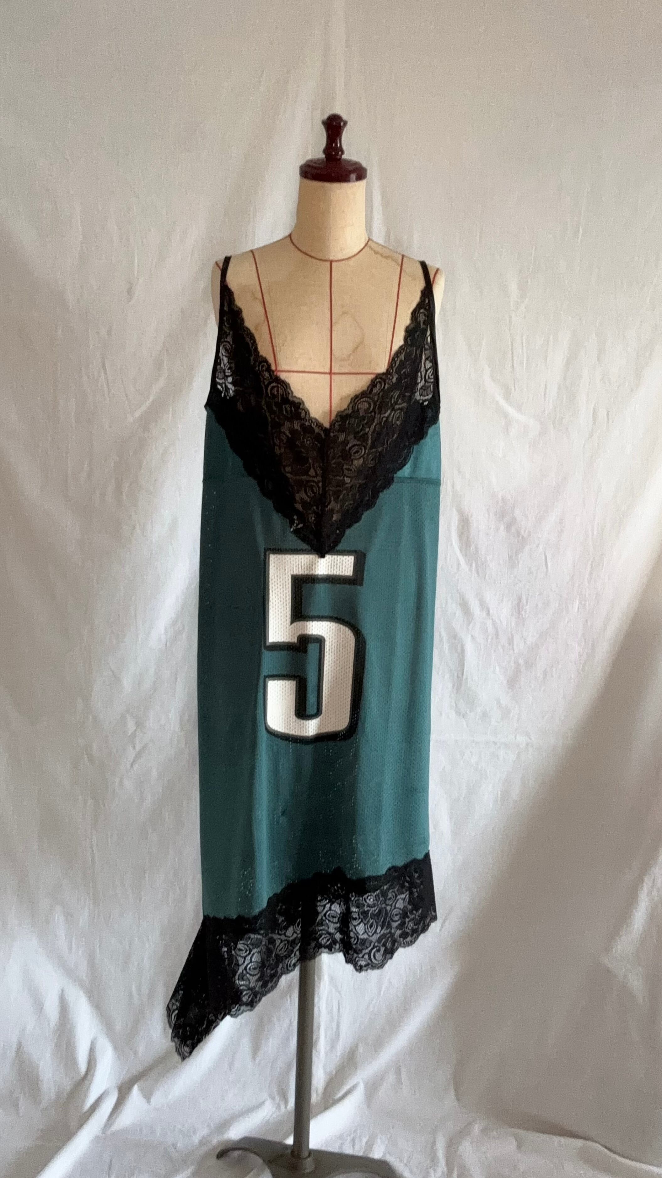 アメフトTをキャミワンピースにリメイクしたRe:make アメフトTキャミワンピースは、グリーンブルーの美しい色合いが魅力の一品です。カジュアルでありながらも、大人っぽい雰囲気が目を引きます!デイリーユースだけでなく、さまざまなシーンでも活躍すること間違いなしです。
